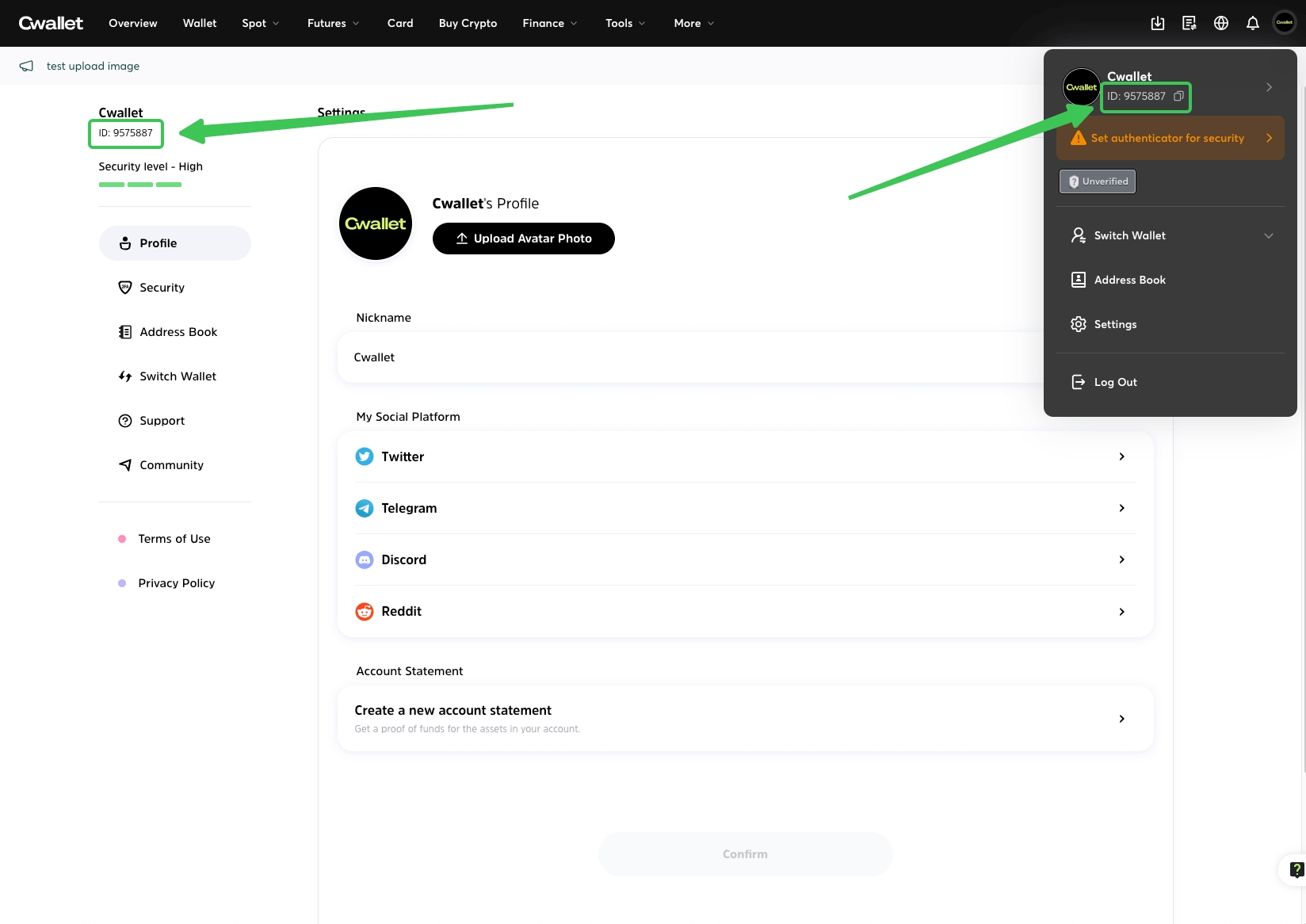 Your Cwallet Identity Upon registration, you are assigned a permanent Cwallet ID. This ID number can't be changed by anyone, and this ID serves as your sole identifier within our system, ensuring that all your activity and assets are correctly linked to you.