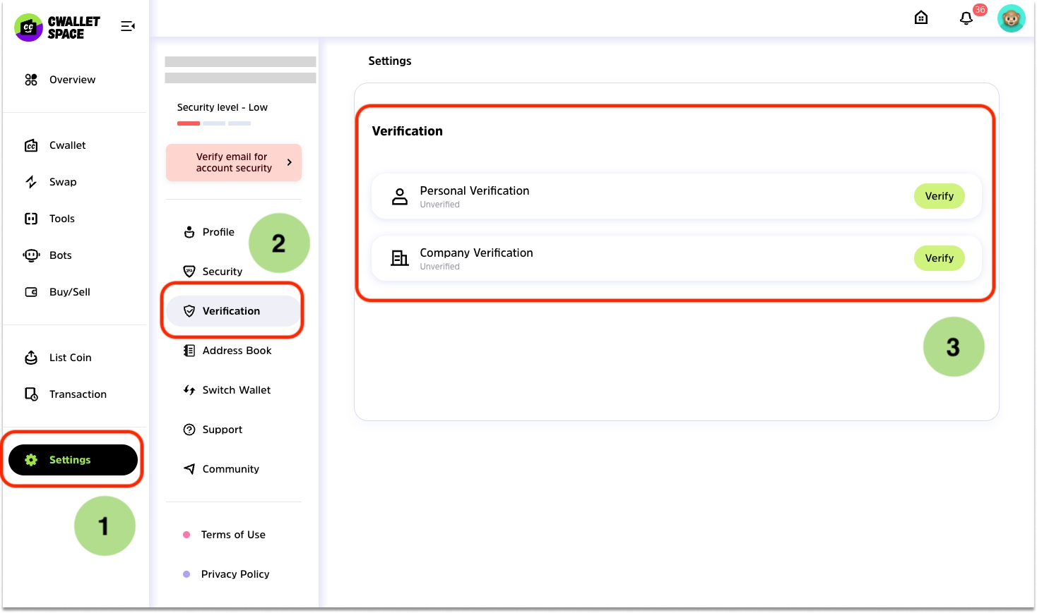 Completed the identity verification to get the crypto buy/ sell qualification on Cwallet.