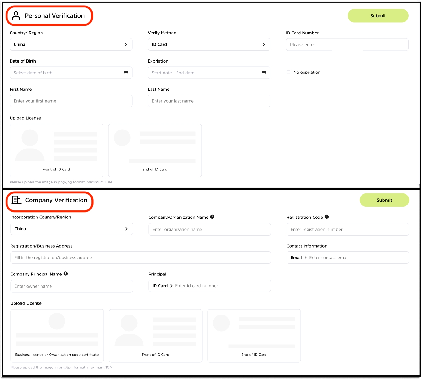 KYC requires the submission of the biometric verification video after you submit the basic info.