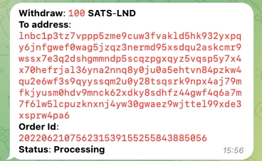 Cwallet bot will response with a message confirming the withdrawal. You may check the withdrawal process and status on this page.