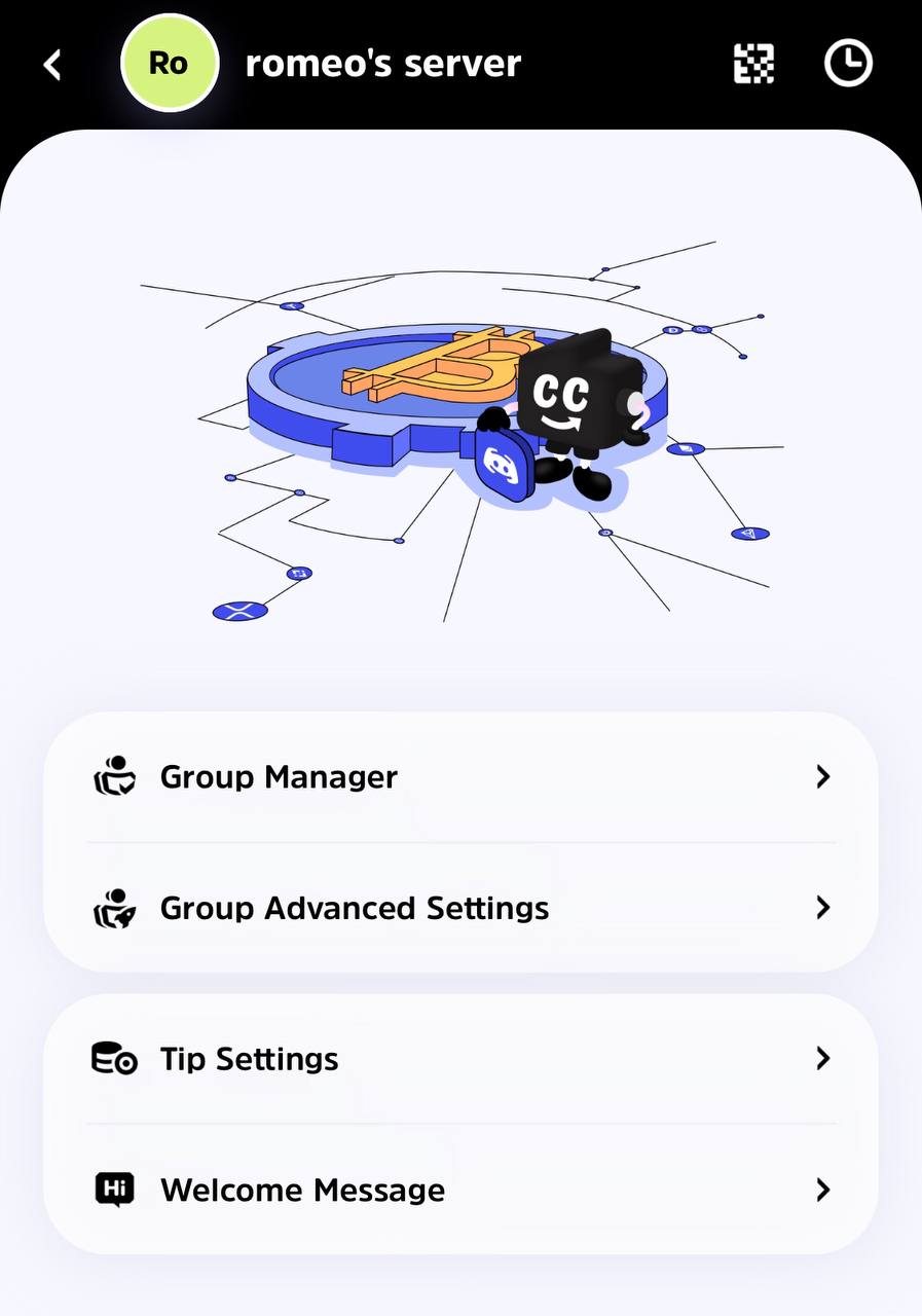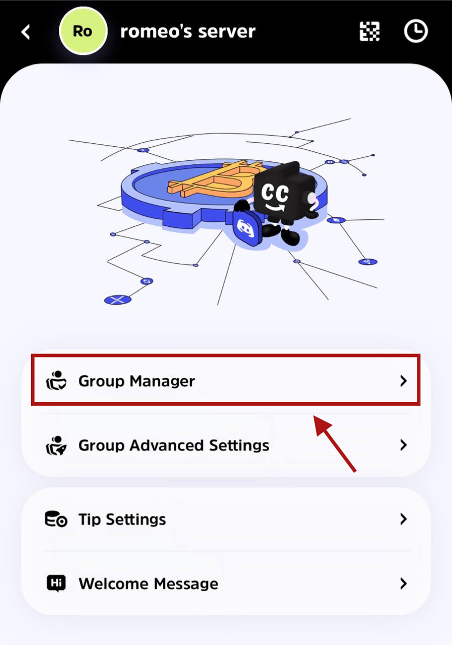 Additionally, management permissions can be flexibly granted to other users for effective server management. Whenever a server owner designates a member as Group Manager, the member will have access to server-related Cwallet bot settings.