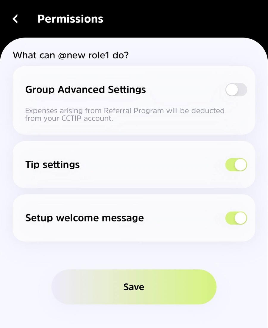 Please note: all group management expenses (currently only the Referral Program will incur expenses) will be deducted from the server owner's Cwallet. Please grant permissions carefully.