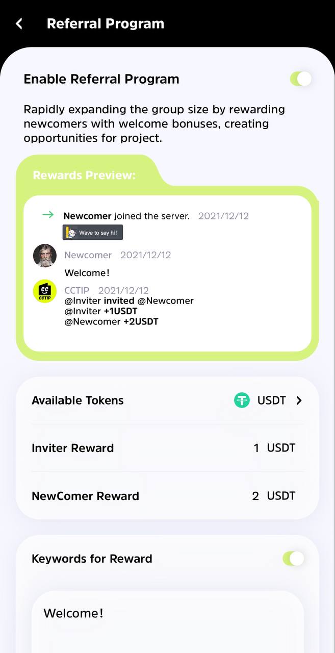 Note: A deduction will be made from the server owner's Cwallet account for the cost of the referral program after it has been enabled.