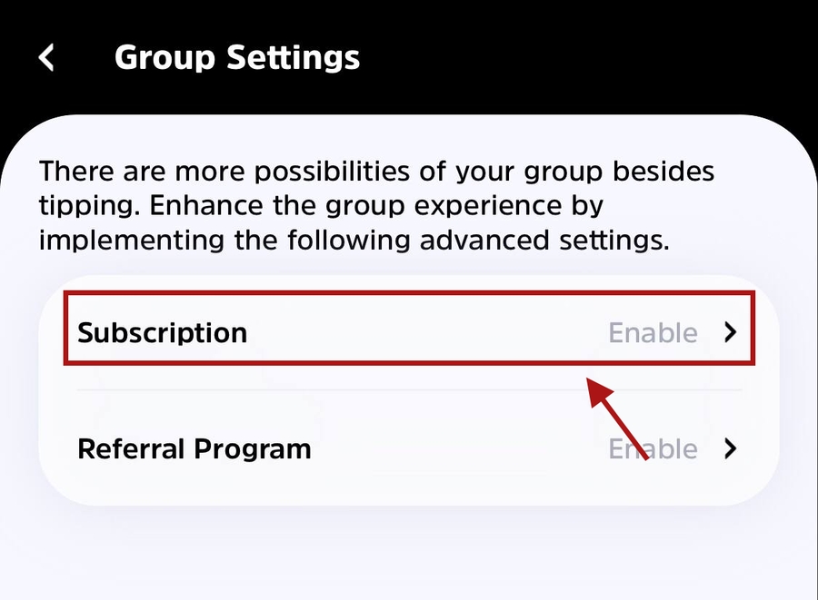 4. Select Subscription. Enable the switch button.