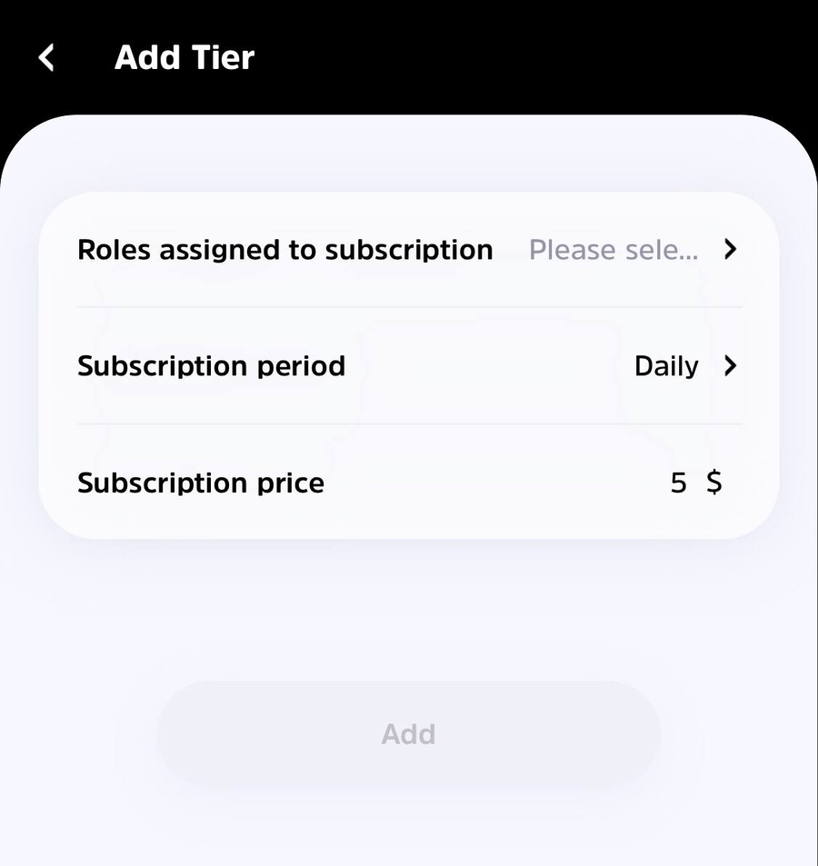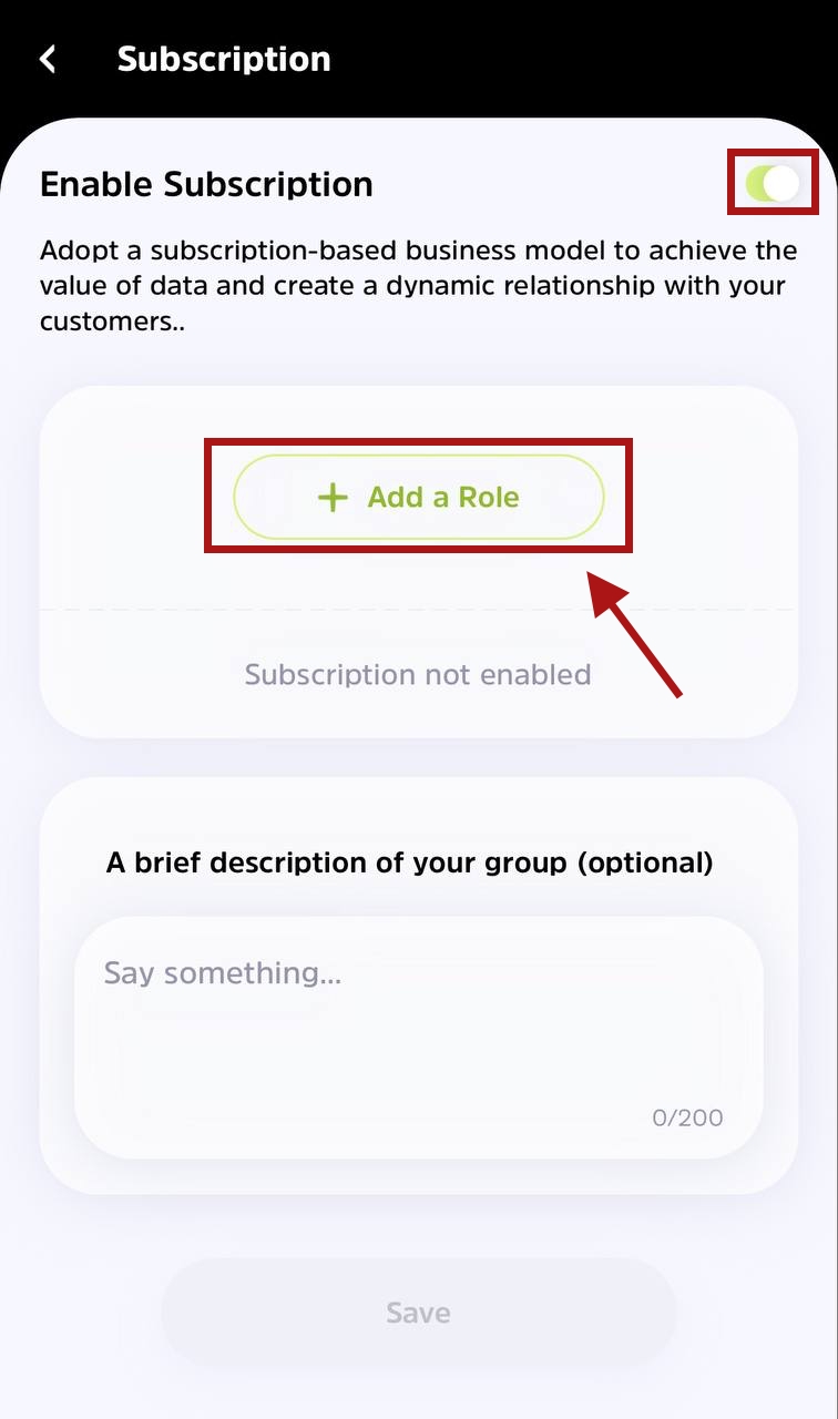 5. Then tap + Add a Role to select your desired role for the subscription settings.