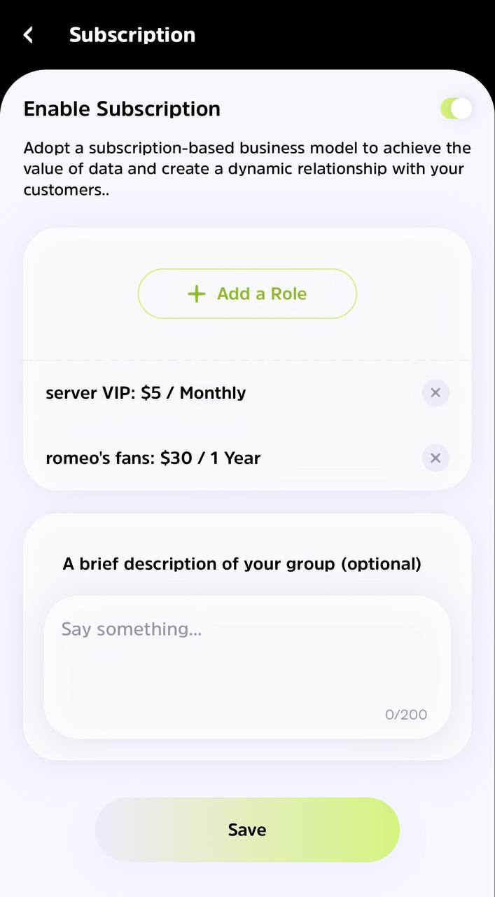 7. On this page, you can view all the subscription roles you have set. After saving the settings users will be able to start subscribing.