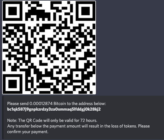 5. The payment can be made through scanning the QR code or pasting the address into your crypto wallet.
