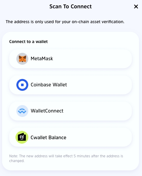 How to verify On-chain assets: You will need to connect your wallet to verify your asset. To begin the verification process, click on Bind Address.