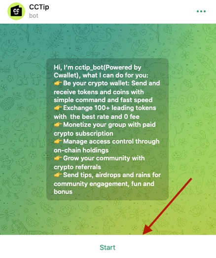 2. Click on the invitation link you received to start a conversation with @Cwallet_com_Bot. Click on Start.