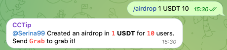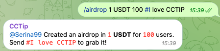 Note: Before sending an airdrop, you must first invite @cctip_bot to your Telegram group.
