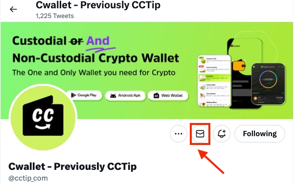 3. Go to the official Twitter account of Cwallet (@cctip_com) and start a direct message.