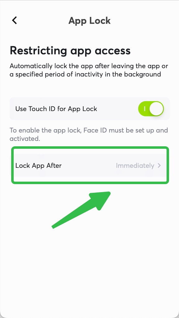 You may also set a specific locking period. A password will be required to unlock the app after this time period