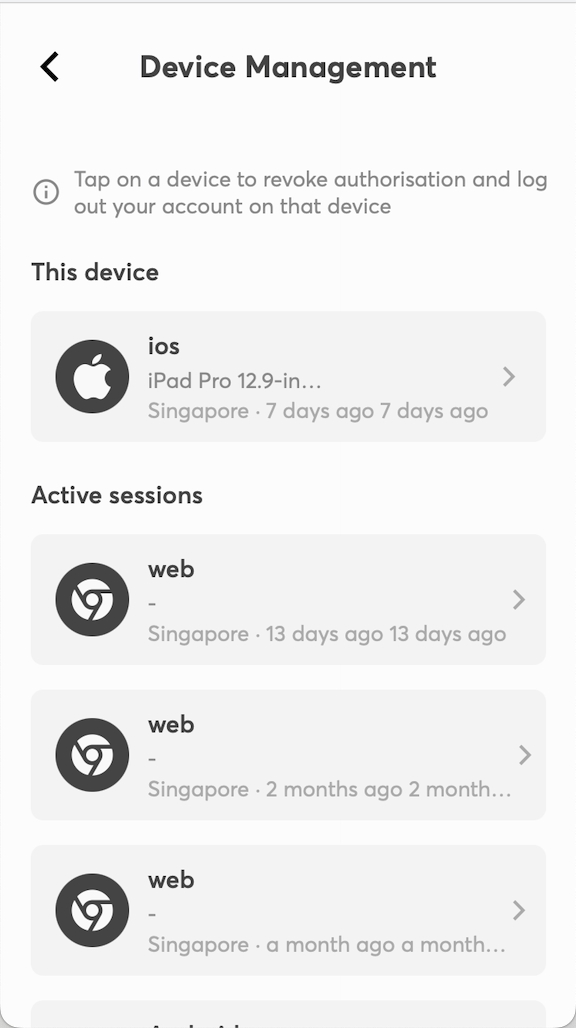 In this setting, you can see which devices your account has been logged in from. You can delete devices that are no longer used or unfamiliar devices to ensure account security.