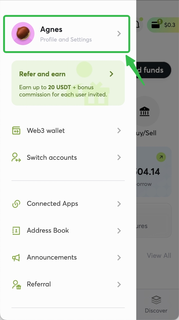 Open the Cwallet app and go to your Profile page. Tap on Security.