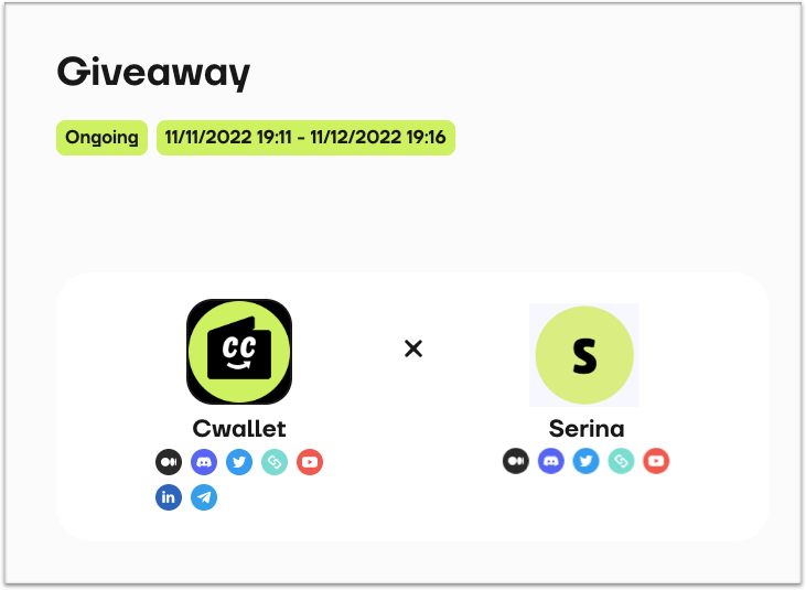 * Each project can add multiple partnership projects to display it on profile and be able to co-host giveaway.