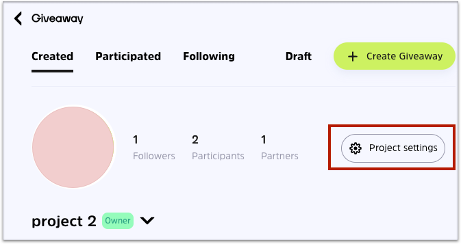 Click on the icon of your project to start creating other projects, or switch projects to create a giveaway or edit their project profile.