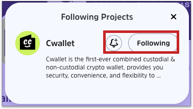 Each Cwallet accounts can follow multiple projects and turn on notifications to receive real-time latest giveaway notifications.
