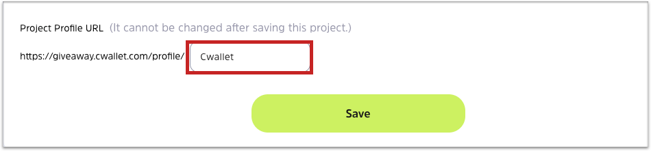 You can edit the suffix of project profile URL here after entering the project information. We recommend using your project name as the suffix of URL so that users are aware of the name of your project. Click **Save** to save it.