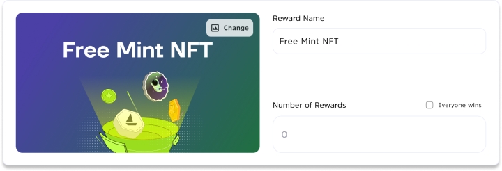 Free Mint NFT Reward will allow the winners to mint an NFT for free on your website, and it’s similar to whitelist, but your team doesn’t need to manually upload a whitelist with all the qualified add
