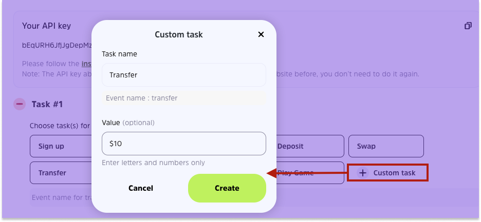 Utilize callback verification to automatically verify whether users have taken any actions within the app. Participants who have performed the actions are eligible to complete this task.