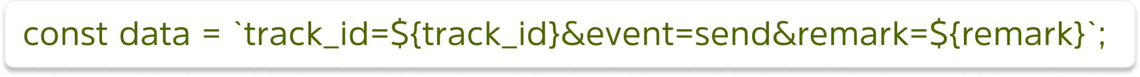 const data = `track_id=${track_id}&event=${send}&remark=${remark}`; // optional