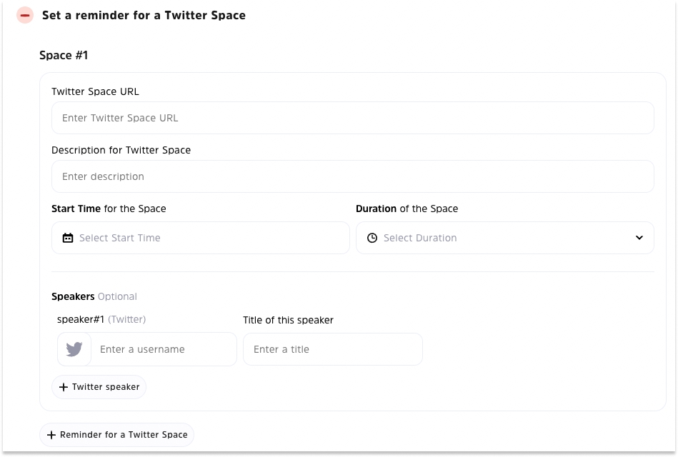 Set a reminder for a Twitter Space: Add Twitter Space URL and description for user to view it on Twitter.