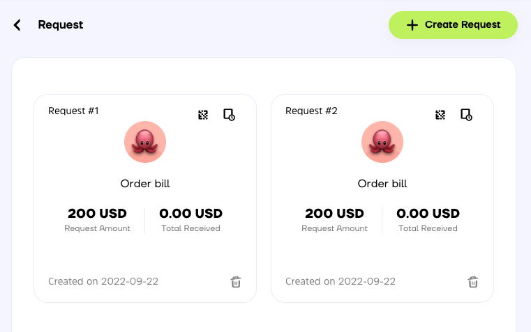In the dashboard, you can view all the requests you created, the total income of each request is clear at a glance, in addition, you may check each request code and transaction record as well. Easily manage all of your requests!