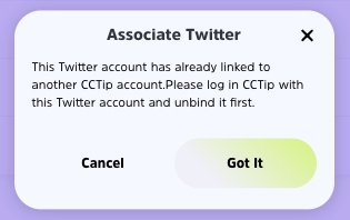 There is a possibility of encountering the following situation. Sometimes when you link with a social media account, you are prompted that it has already linked to another account as shown below.